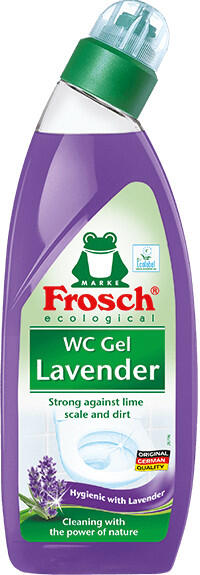 Frosch levendulás wc tisztító. Erős vízkőoldó hatású tisztítószer zuhanyzók, fürdőkádak, mosdókagylók, és csempék takarításához.