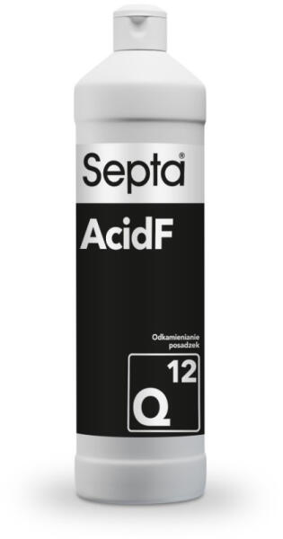 A Septa AcidF Q12 egy koncentrált savas tisztítószer a padlóról a vízkőlerakódások eltávolítására, a vendéglátóipari berendezések vízkőmentesítésére, valamint a szaniterek, medencék és mosógépek vízkőmentesítésére. Hatékonyan távolítja el a túl kemény víz által okozott vízkőlerakódásokat.